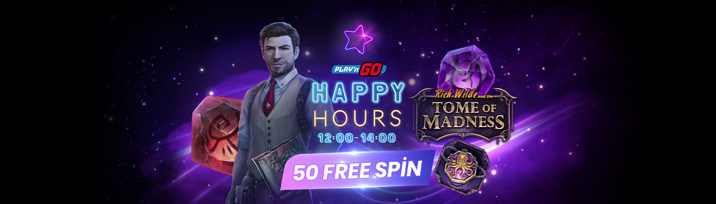 - Tome of Madness slotuna özel her biri 4 TL’lik tam 50 Free Spin al.
